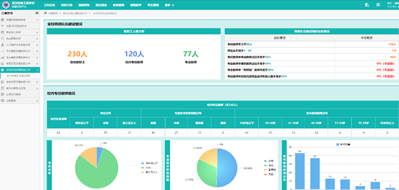 学校依托依能智慧校园平台,基本实现了行政办公、招生就业、教务管理、课程教学等工作的系统化、规范化、精细化、信息化,建立常态化教学质量检测、分析和预警机制,形成“管理、教学、学习”三位一体、同步发展的信息化管理体系,给学校管理和教学带来的改观尤为显著,在全省乃至全国形成示范和带动作用。