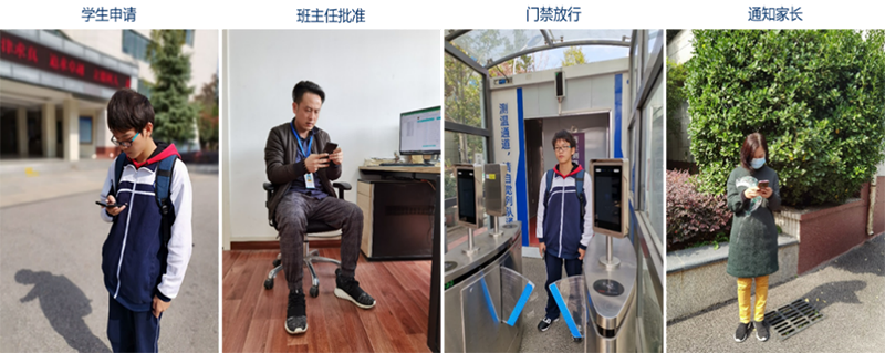 智慧门禁。学校建成了“人脸识别系统”,师生进出校园通过系统识别人脸自动放行,大大提升了门卫的工作效率,提高了校园安全。学生请假后,班主任老师通过系统确认请假,并传达到校园门卫室,由门卫完成审核,并负责为学生放行,杜绝了一些假请假现象。